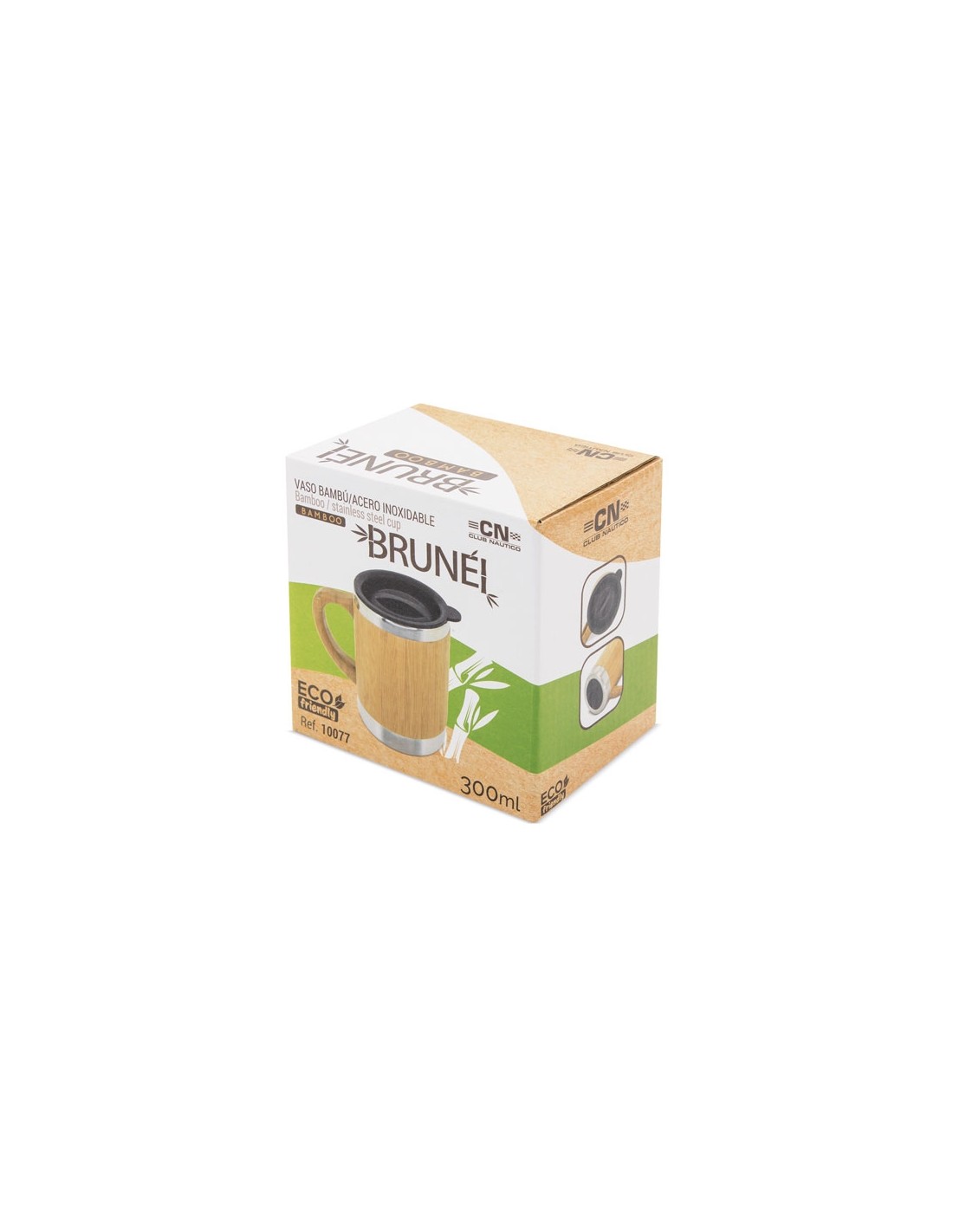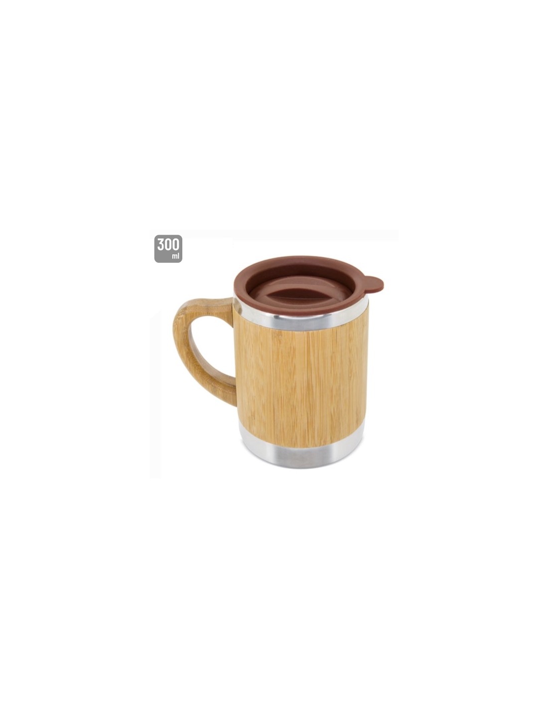 Interior realizado de acero inoxidable doble capa y exterior en bambú.Incluye base antideslizante.Capacidad 300 ml
